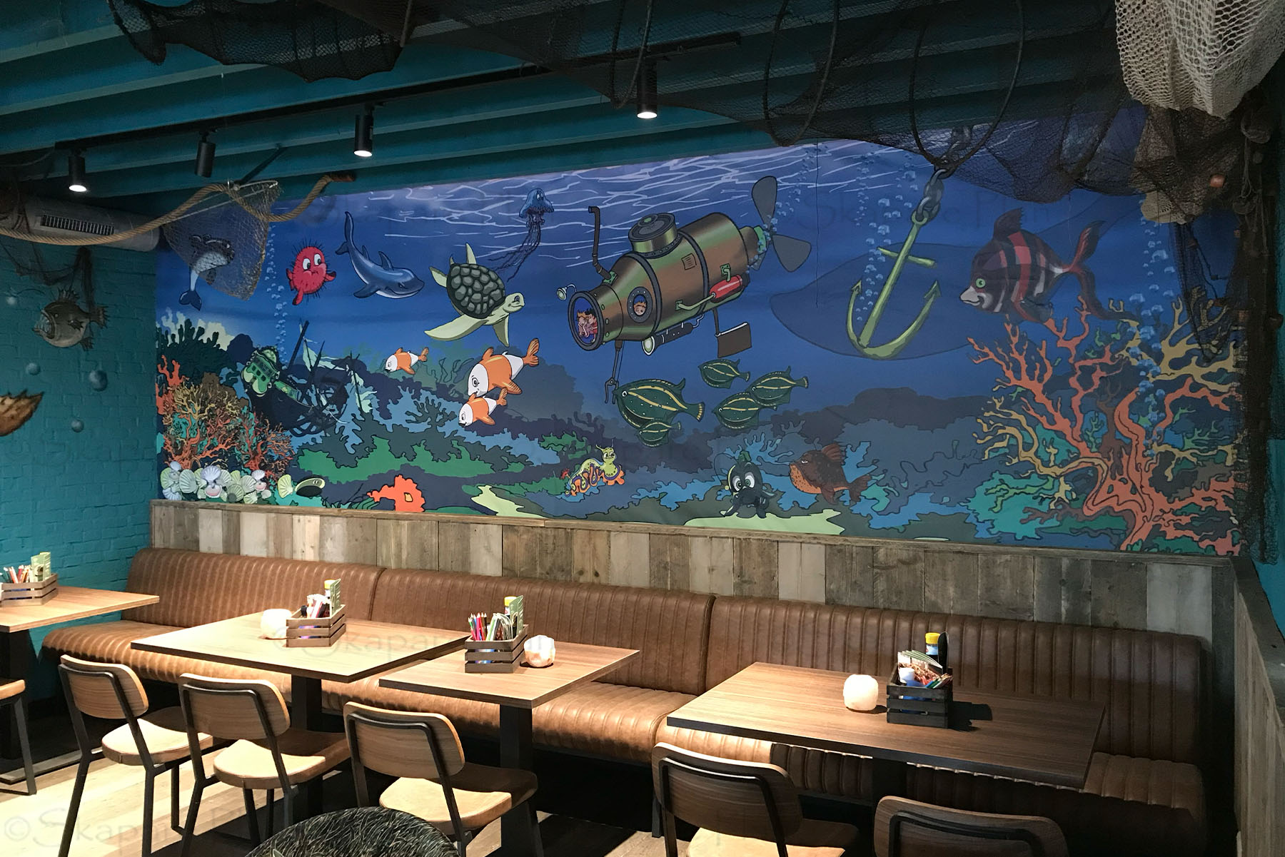 Skapare Plan maakt veel muurschilderingen voor horeca-gelegenheden.
