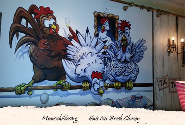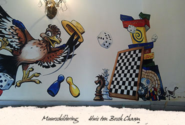 Muurschilderingen worden uitgevoerd in watergedragen verven. Weidse uitzichten, fraaie transparante fresco-achtige technieken, bedrieglijke trompe l'oeil schilderingen, subtiele versieringen en decoraties, maar ook robuuste taferelen zijn mogelijk.