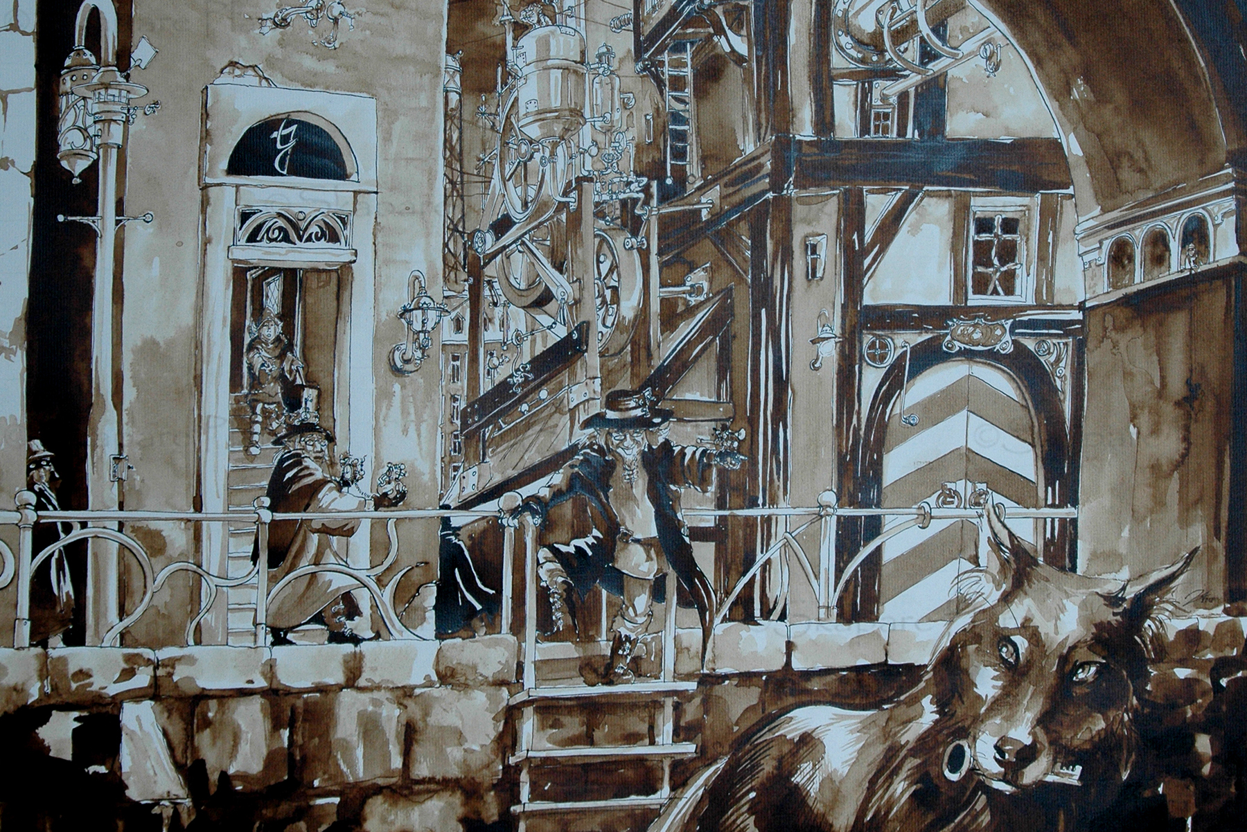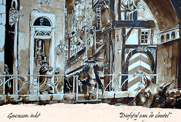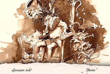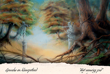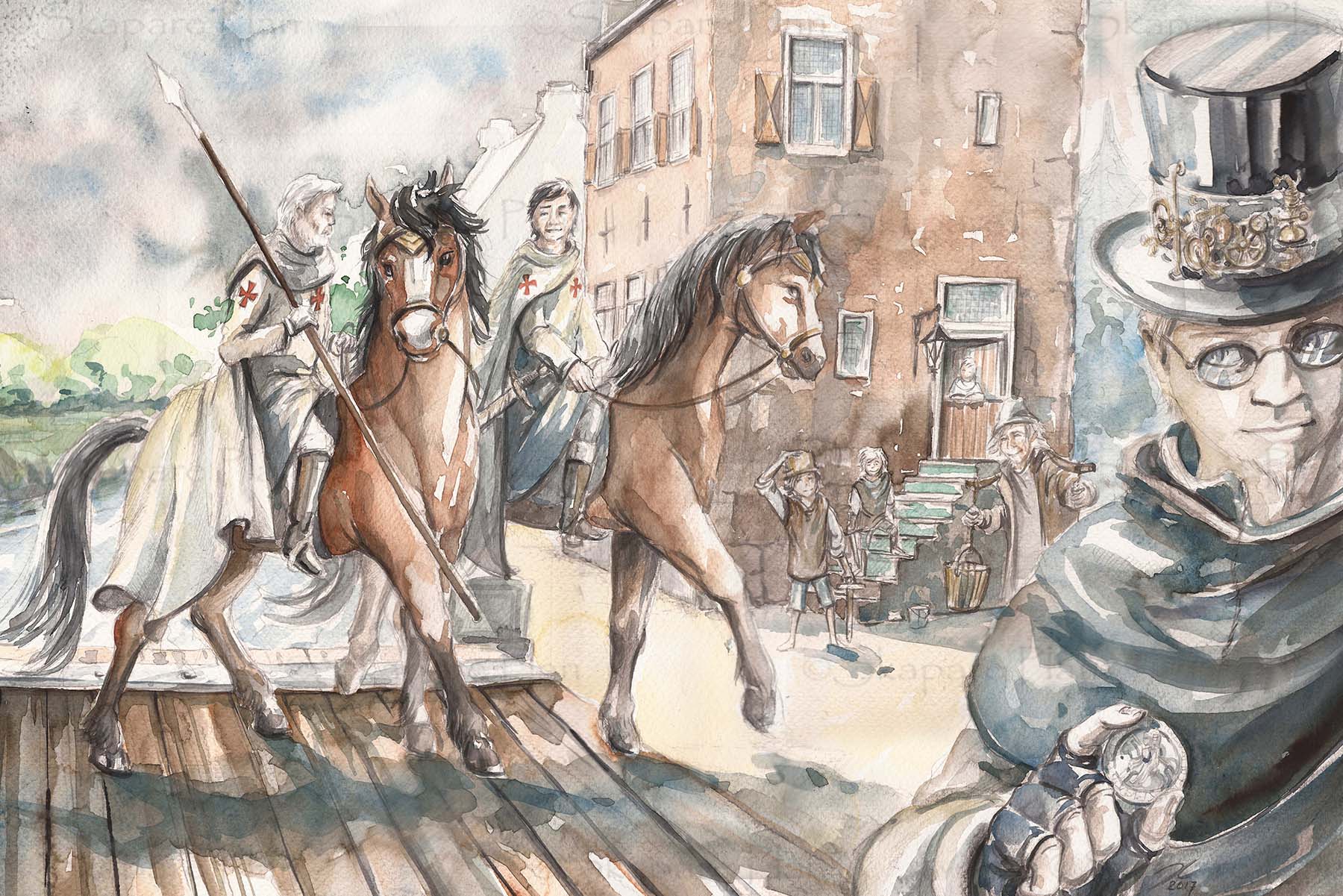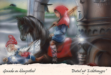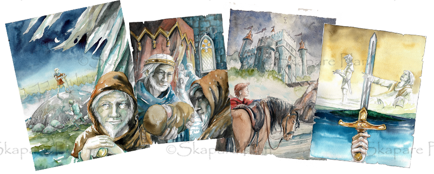 Koning Arthur is een verhaal dat me maar niet loslaat. Regelmatig kan ik de verleiding niet weerstaan om episoden van dat epos in beelden om te zetten. Voor de versie van Sir Thomas Mallory, Le Mort d'Arthur levert een schat aan elementen voor prachtige illustraties. Lees meer over de Koning Arthurprojecten>>
